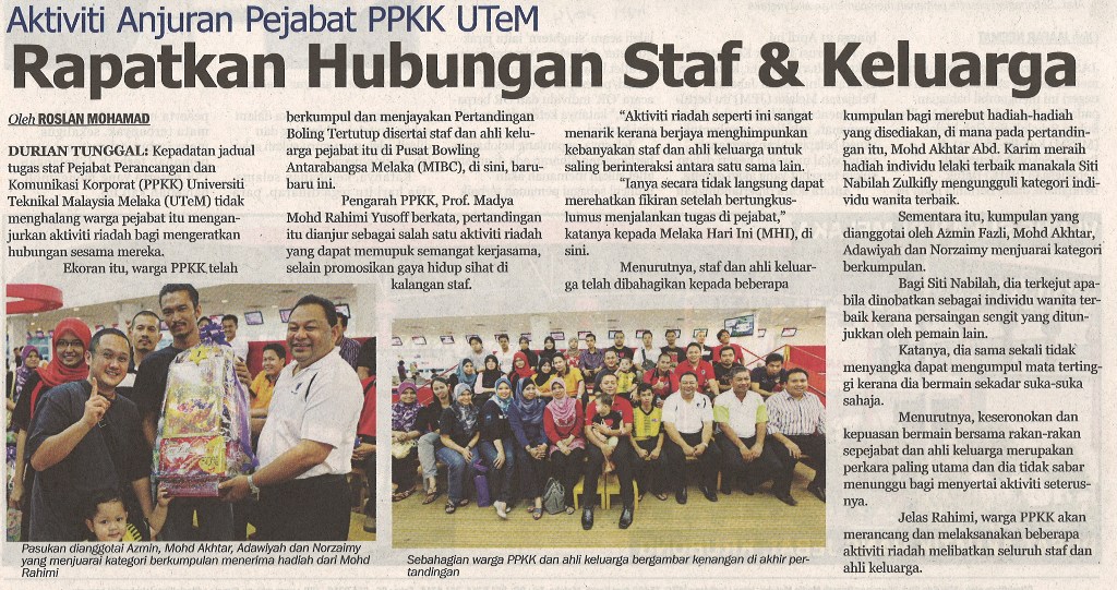 Aktiviti Anjuran Pejabat PPKK UTeM Rapatkan Hubungan Staf & Keluarga