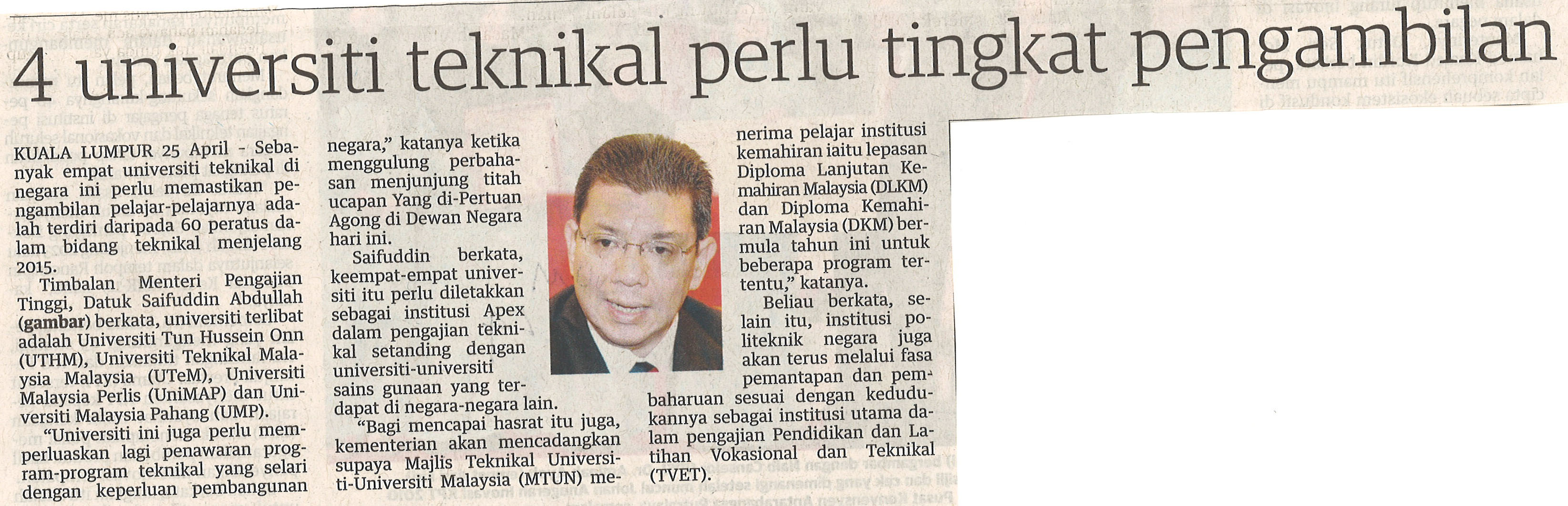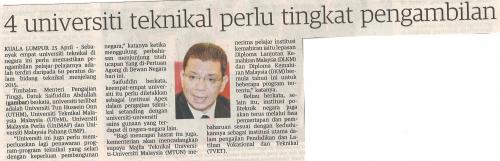 4 universiti teknikal perlu tingkat pengambilan