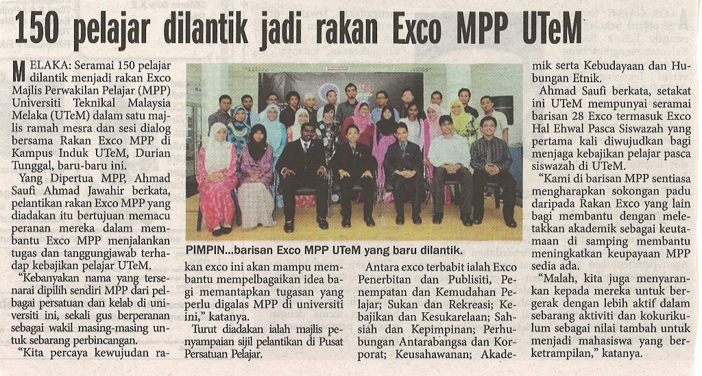 150 pelajar dilantik jadi rakan Exco MPP UTeM