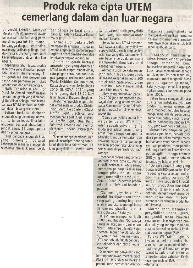 Produk reka cipta UTEM cemerlang dalam dan luar negara
