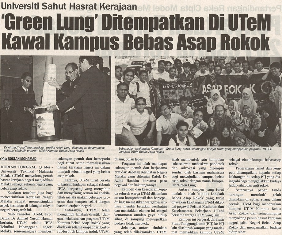 Universiti Sahut Hasrat Kerajaan 'Green Lung' Ditempatkan Di UTeM Kawal Kampus Bebas Asap Rokok