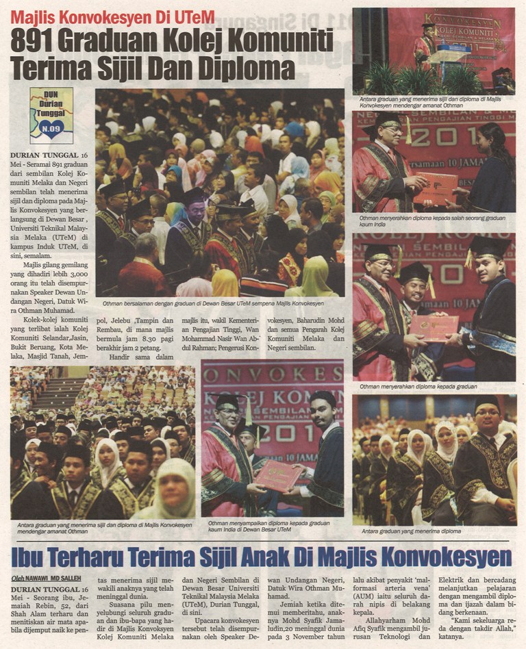 Majlis Konvokesyen Di UTeM 891 Graduan Kolej Komuniti Terima Sijil Dan Diploma
