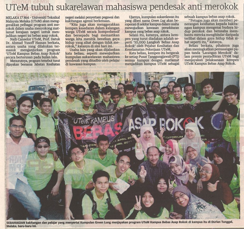 UTeM tubuh sukarelawan mahasiswa pendesak anti merokok