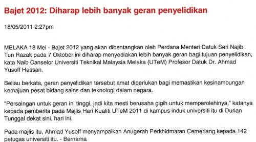 Bajet 2012:Diharap lebih banyak geran penyelidikan