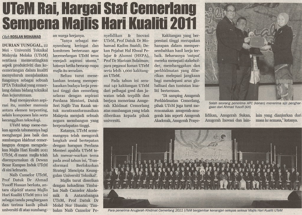 UTeM Rai,Hargai Staf Cemerlang Sempena Majlis Hari Kualiti 2011