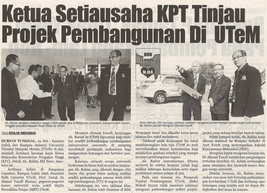 Ketua Setiausaha KPT Tinjau Projek Pembangunan Di UTeM