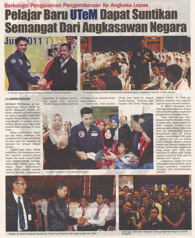 Berkongsi Pengalaman pengembaraan Ke Angkasa Lepas Pelajar Baru UTeM Dapat Suntikan Semangat DariAngkasawan Negara