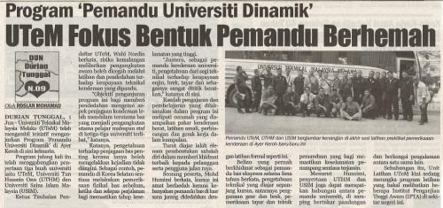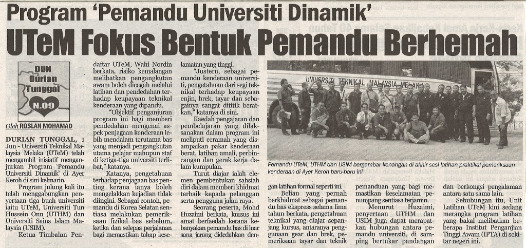 Program 'Pemandu Universiti Dinamik' UTeM Fokus Bentuk Pemandu Berhemah