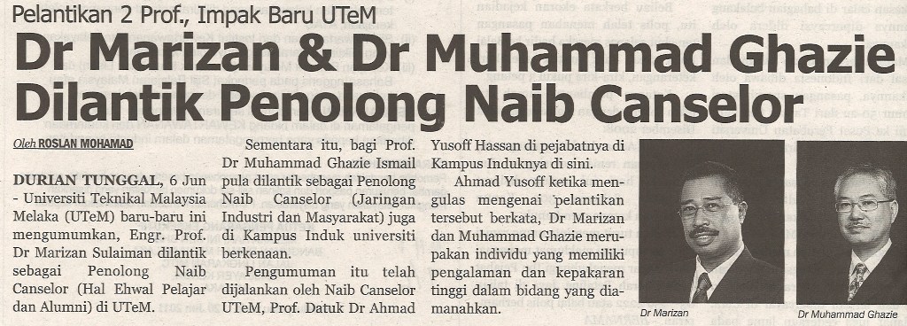 Perlantikan 2 Prof Impak Baru UTeM Dr Marizan & Dr Muhammad Ghazie Dilantik Penolong Naib Canselor