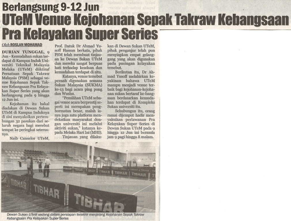 Berlangsung 9-12 Jun UTeM Venue Kejohanan Sepak Takraw Kebangsaan Pra Kelayakan Super Series