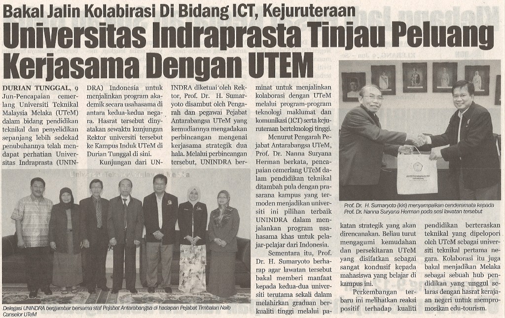 Bakal Jalin Kolabirasi Di Bidang ICT,Kejuruteraan Universitas Indraprasta Tinjau Peluang Kerjasama Dengan UTEM