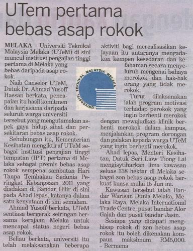 IPT pertama di Melaka berjaya berbuat demikian UTeM bebas asap rokok