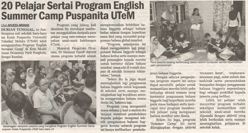 20 Pelajar Sertai Program English Summer Camp Puspanita UTeM