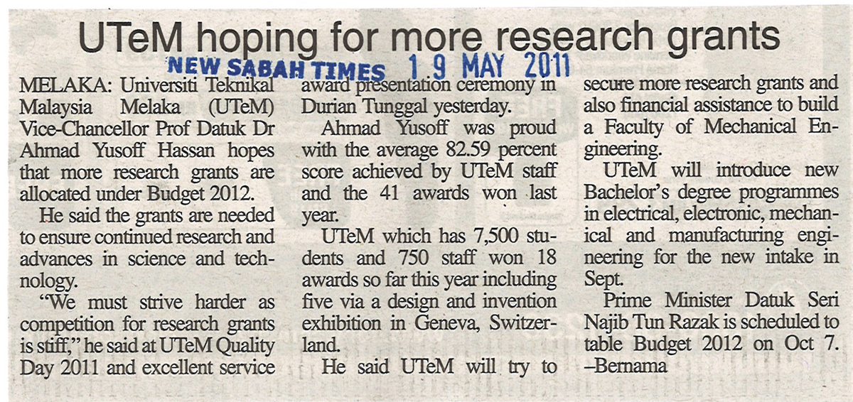 UTeM hoping for more research grants