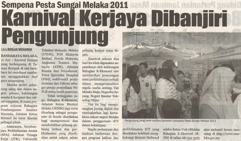 Sempena Pesta Sungai Melaka 2011 Karnival Kerjaya Dibanjiri Pengunjung