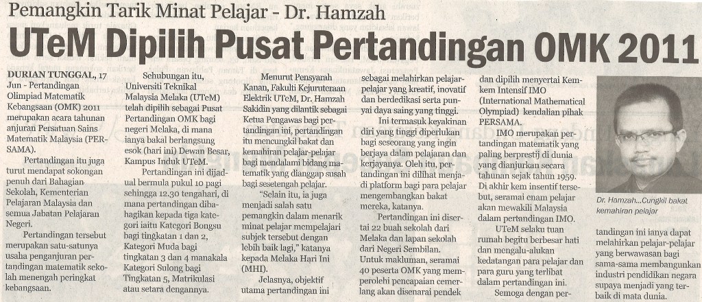 Pemangkin Tarik Minat Pelajar - Dr. Hamzah UTeM Dipilih Pusat Pertandingan OMK 2011