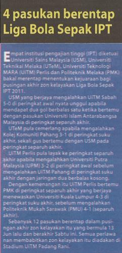 4 pasukan berentap Liga Bola Sepak IPT