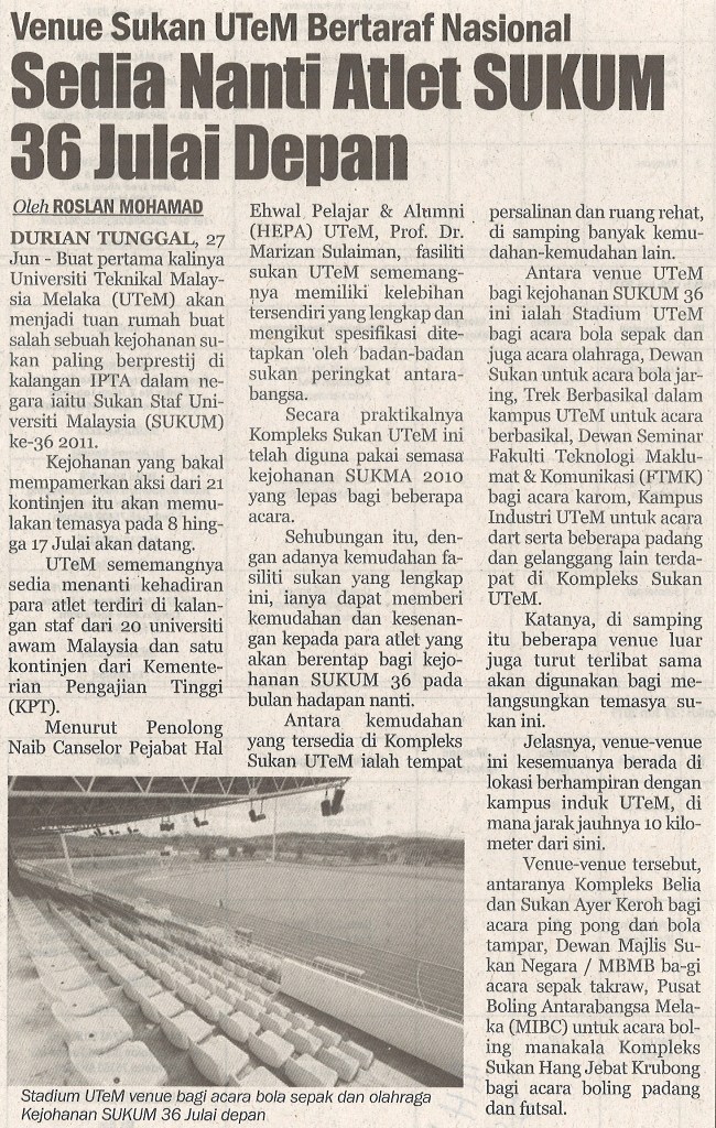 Venue Sukan UTeM Bertaraf Nasional Sedia Nanti Atlet SUKUM 36 Julai Depan