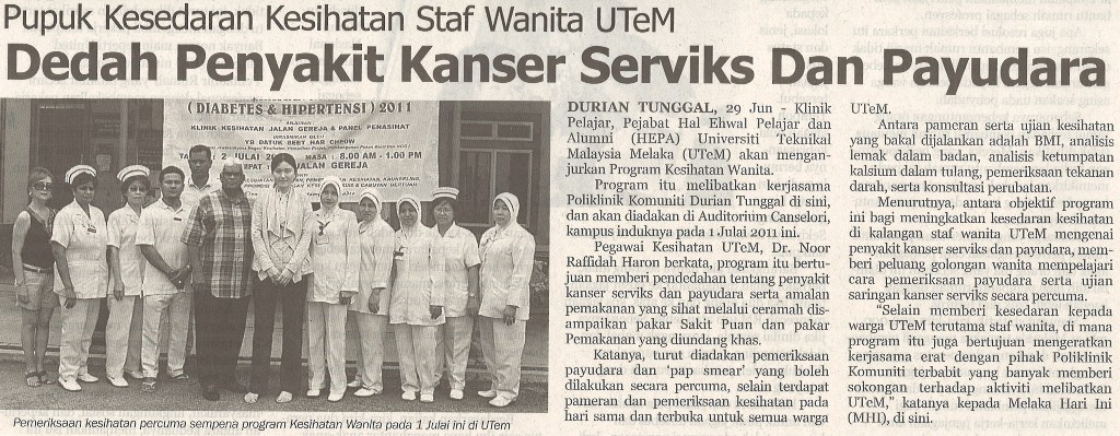 Pupuk Kesedaran Kesihatan Staf Wanita UTeM Dedah Penyakit Kanser Serviks Dan Payudara