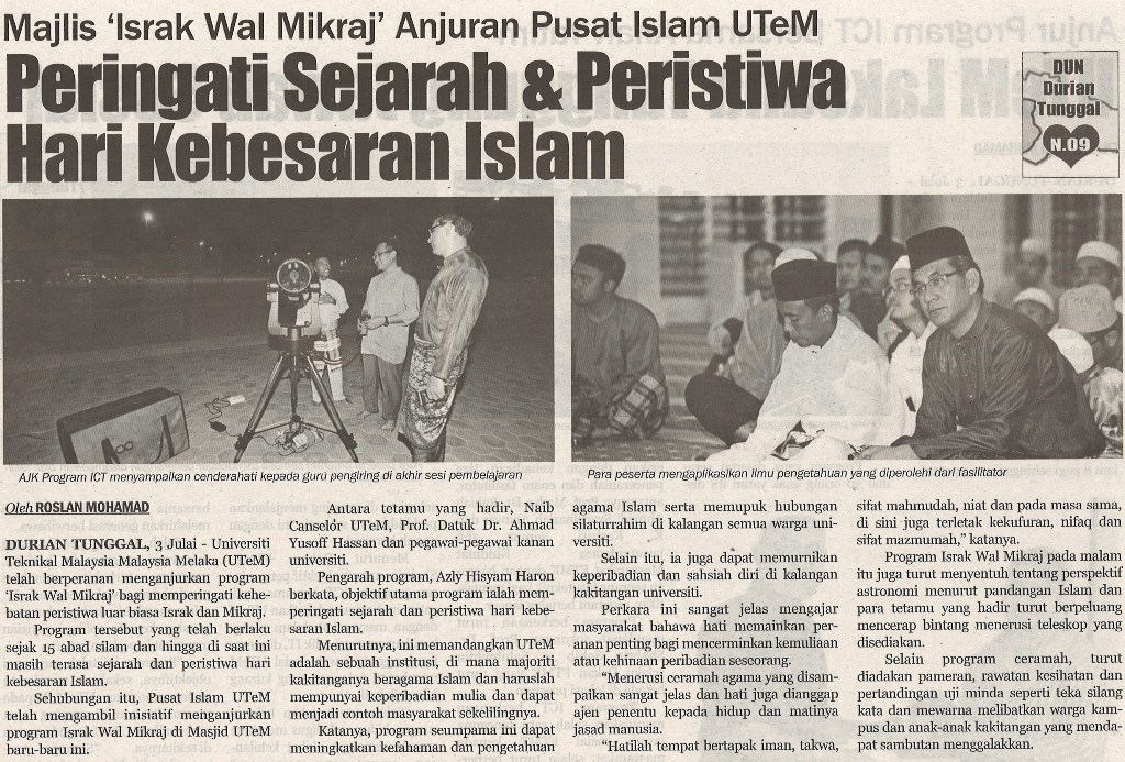 Majlis 'Israk Wal Mikraj' Anjuran Pusat Islam UTeM Peringati Sejarah & Peristiwa Hari Kebesaran Islam