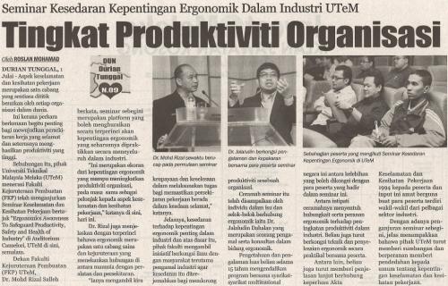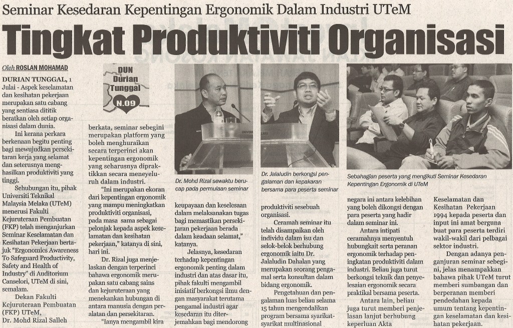 Seminar Kesedaran Kepentingan Ergonomik Dalam Industri UTeM Tingkat Produktiviti Organisasi