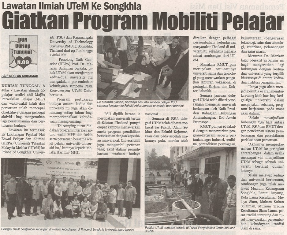 Lawatan Ilmiah UTeM Ke Songkhla Giatkan Program Mobiliti Pelajar