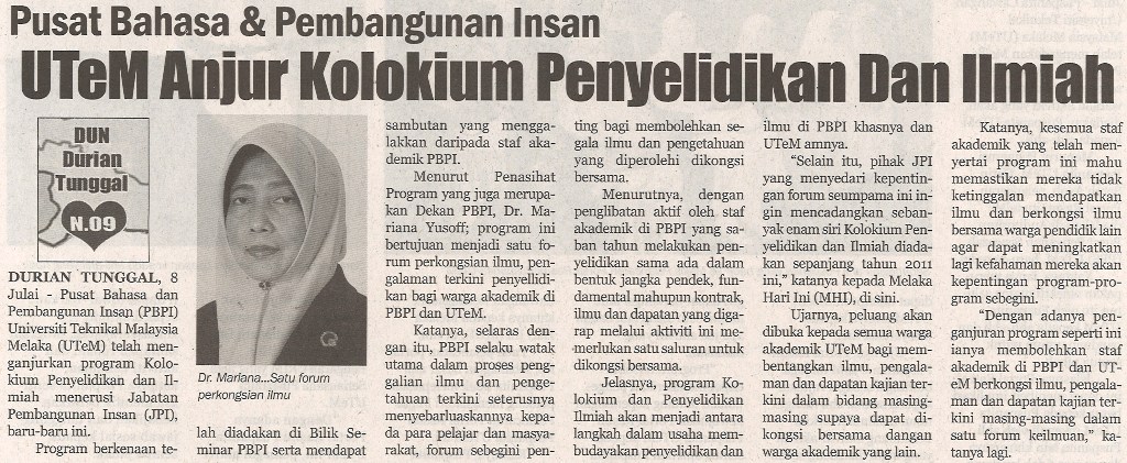 Pusat Bahasa & Pembangunan Insan UTeM Anjur Kolokium Penyelidikan Dan Ilmiah