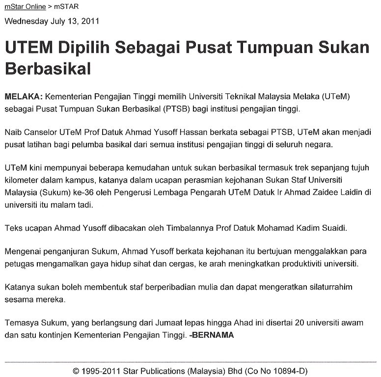 UTeM In Newspapers