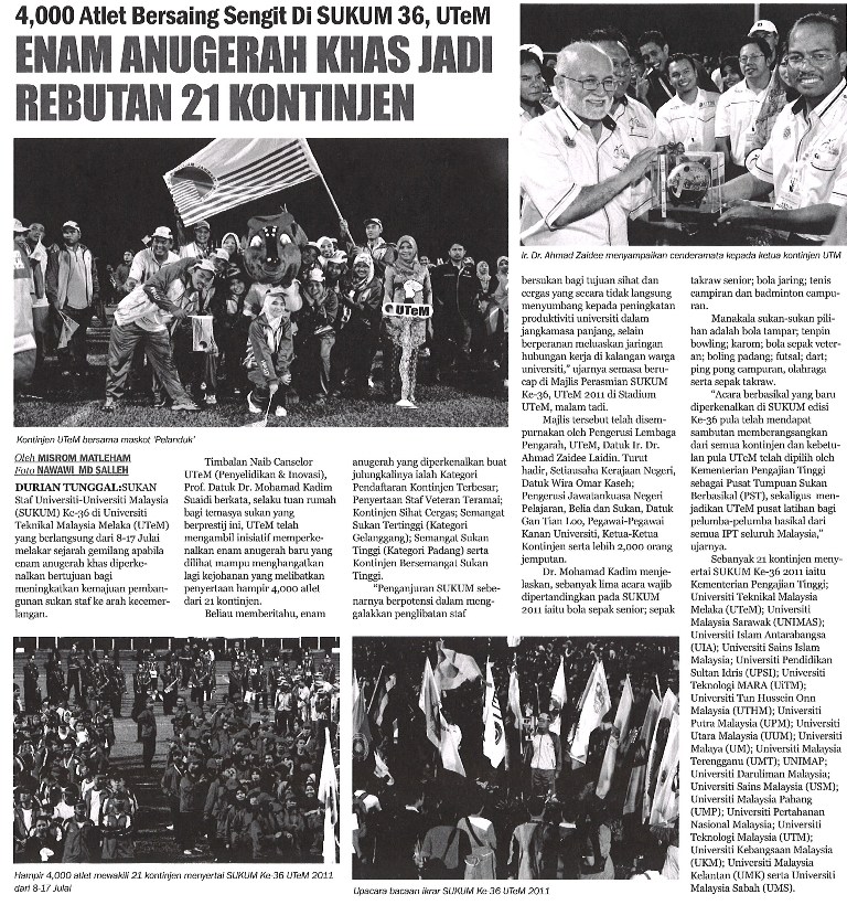 4,000 Atlet Bersaing Sengit Di SUKUM 36, UTeM ENAM ANUGERAH KHAS JADI REBUTAN 21 KONTINJEN