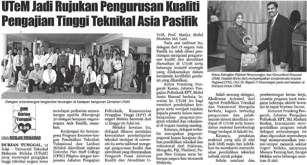UTeM Jadi Rujukan Pengurusan Kualiti Pengajian Tinggi Teknikal Asia Pasifik