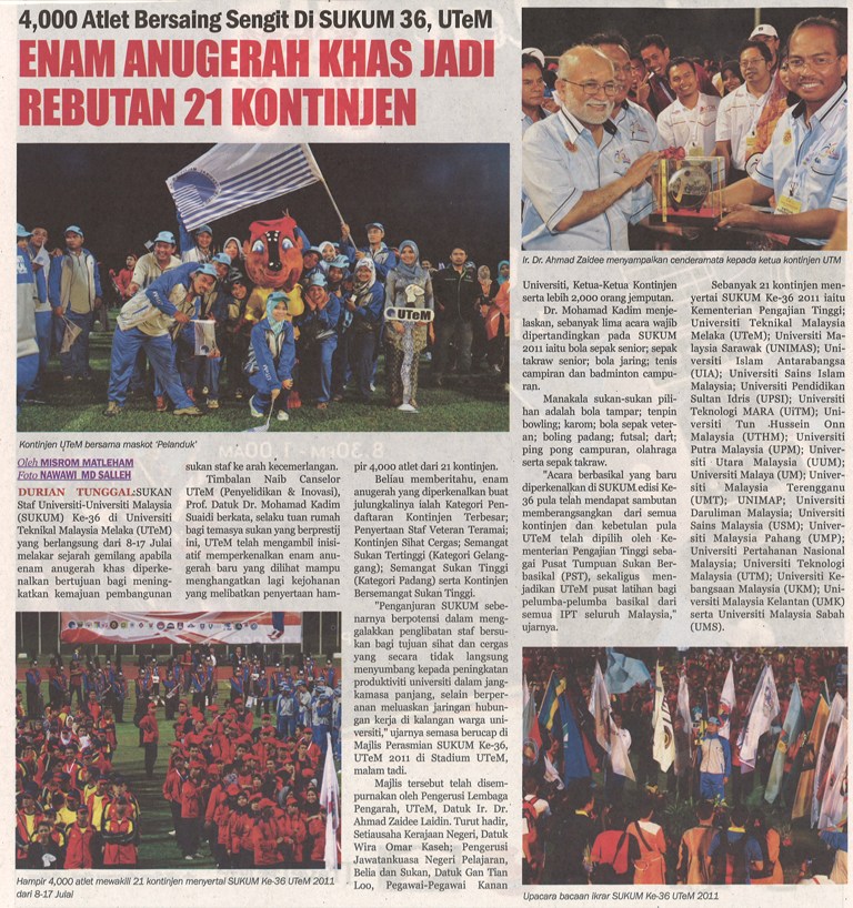 4,000 Atlet Bersaing Sengit Di SUKUM 36,UTeM ENAM ANUGERAH KHAS JADI REBUTAN 21 KONTINJEN