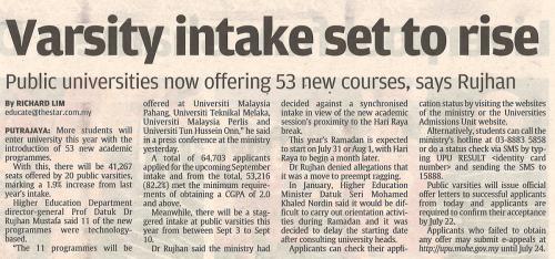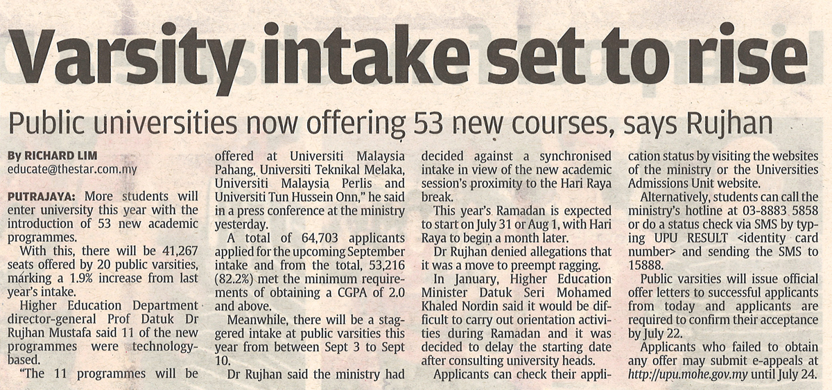 Varsity intake set to rise, Public universities now offering 53 new courses, says Rujhan