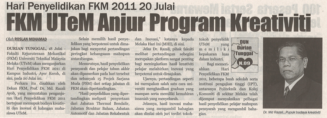 Hari Penyelidikan FKM 2011 20 Julai, FKM UTeM Anjur Program Kreativiti