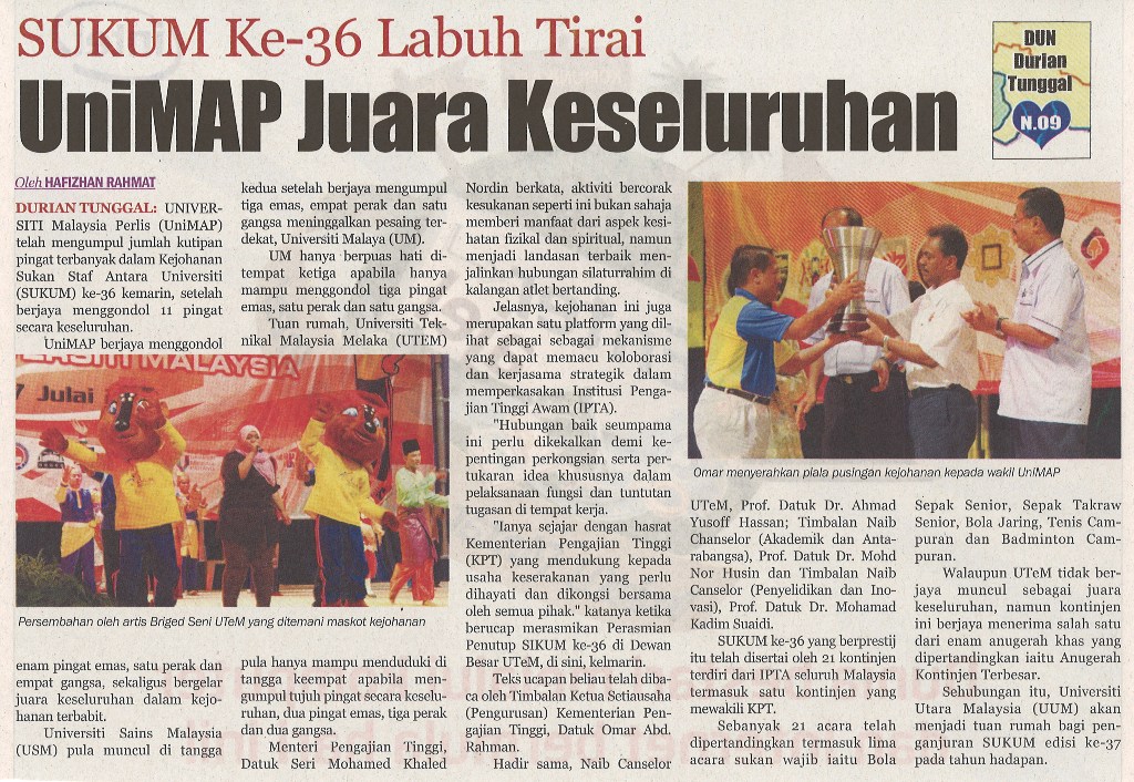 SUKUM Ke-36 Labuh Tirai UniMAP Juara Keseluruhan