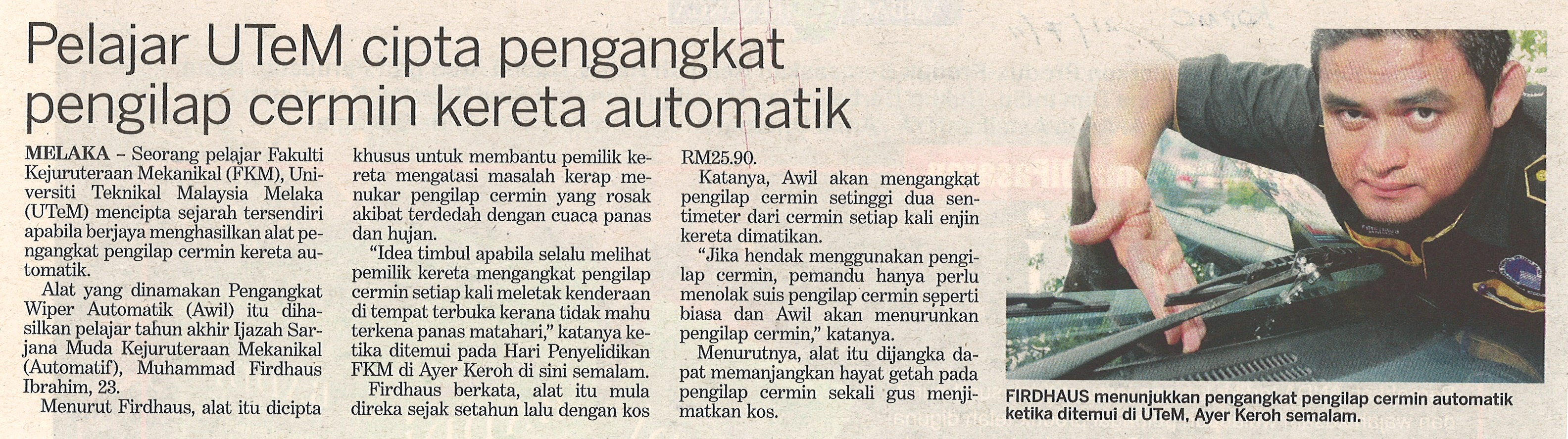 Pelajar UTeM cipta pengangkat pengilap cermin kereta automatik
