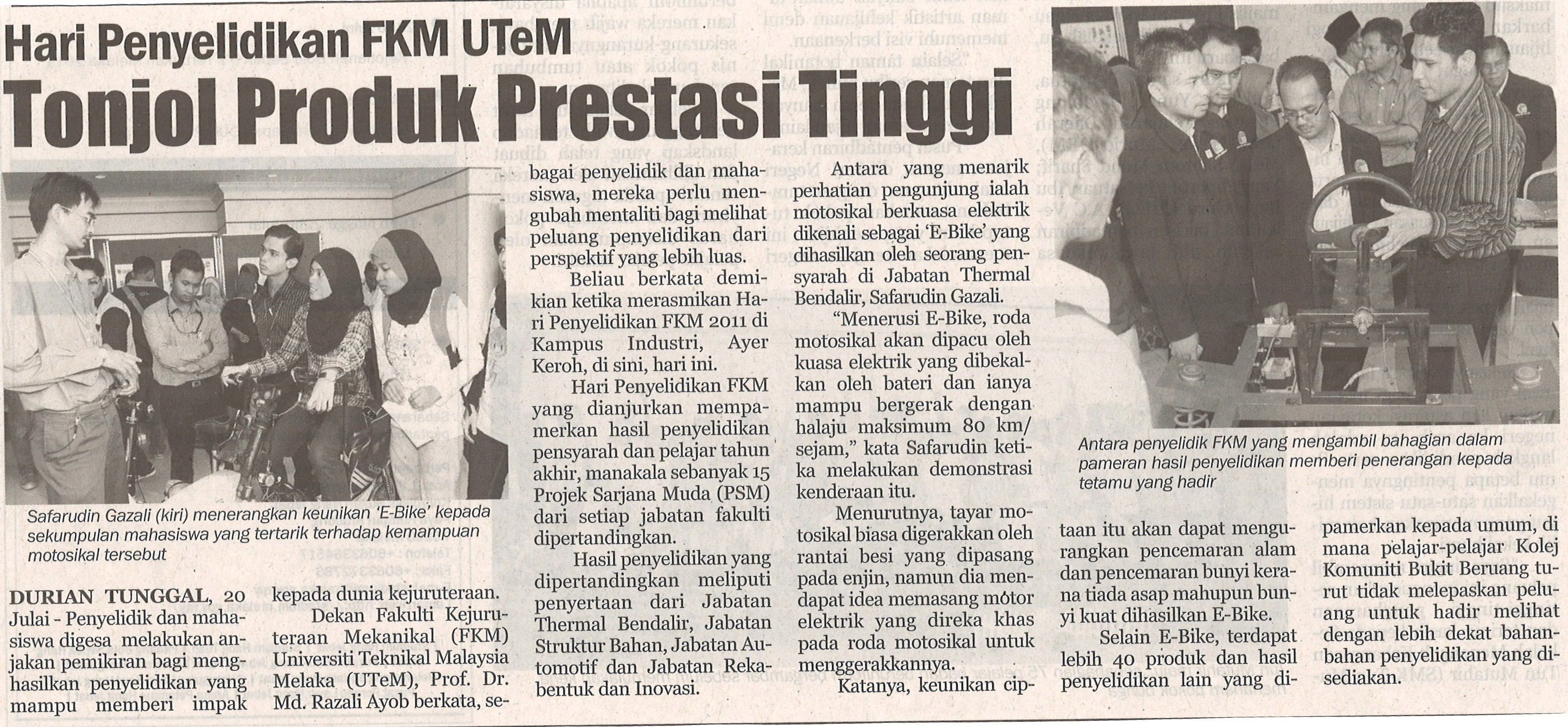Hari Penyelidikan FKM UTeM Tonjol Produk Prestasi Tinggi
