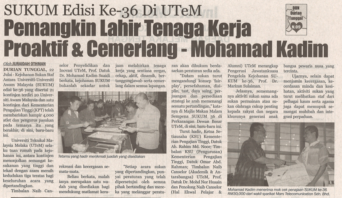 SUKUM Edisi Ke-36 di UTeM Pemangkin Lahir Tenaga Kerja Proaktif & Cemerlang - Mohamad Kadim