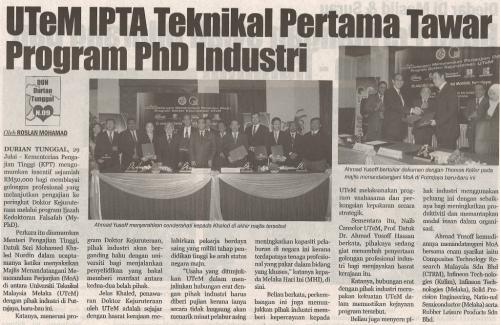 UTeM IPTA Teknikal Pertama Tawar Program PhD Industri