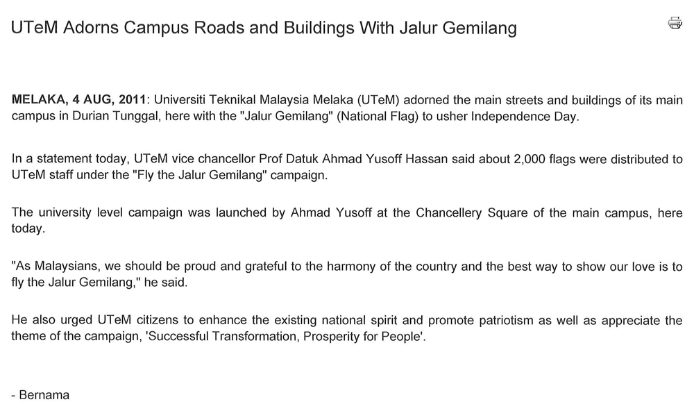 UTeM Adorns Campus Roads And Buildings With Jalur Gemilang