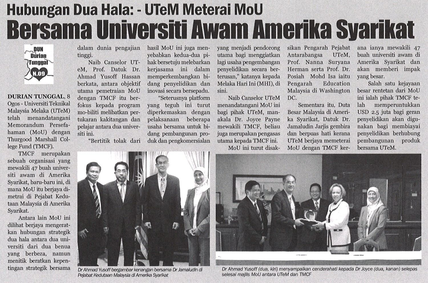 Hubungan dua hala :- UTeM Meterai MoU bersama Universiti Awam Amerika Syarikat