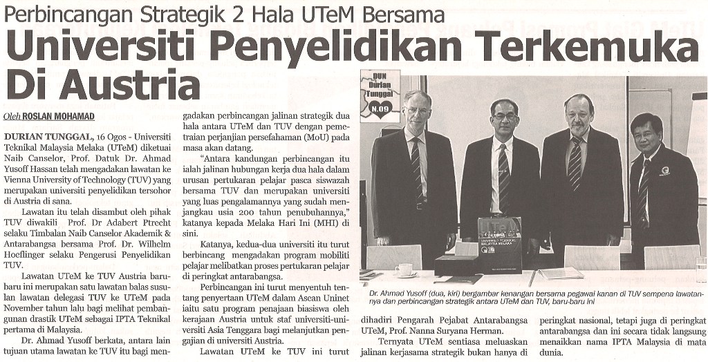 Perbincangan Strategik 2 Hala UTeM Bersama Universiti Penyelidikan Terkemuka Di Austria