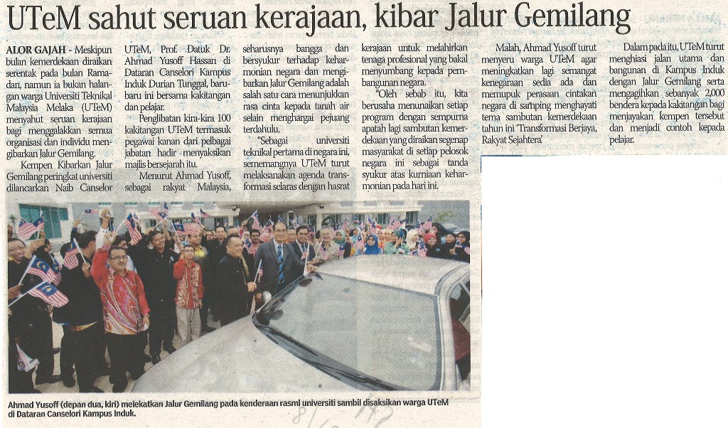 UTeM sahut seruan kerajaan, kibar Jalur Gemilang