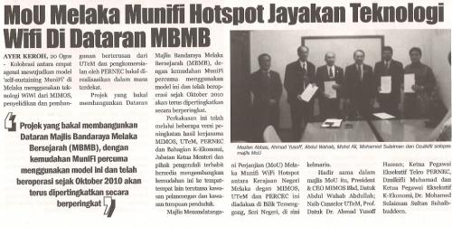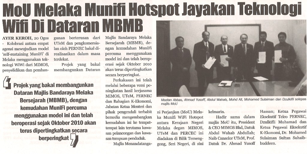 MoU Melaka Munifi Hotspot Jayakan Teknologi Wifi Di Dataran MBMB