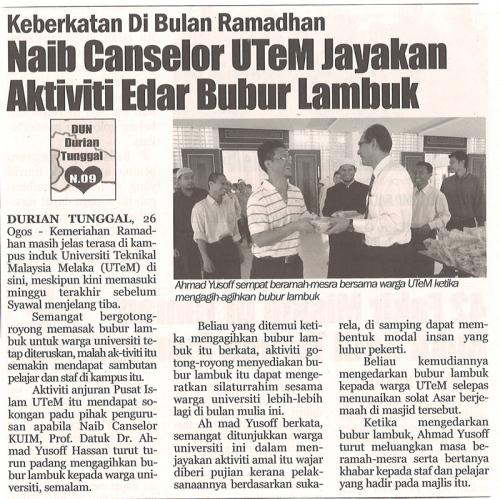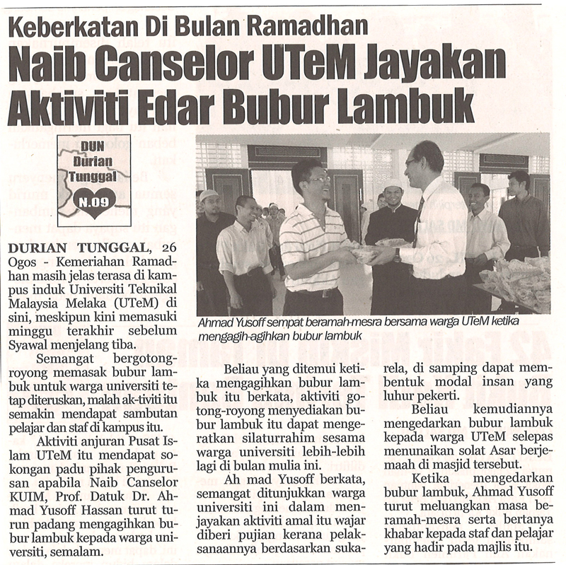 Keberkatan di Bulan Ramadhan Naib Canselor UTeM Jayakan Aktiviti Edar Bubur Lambuk