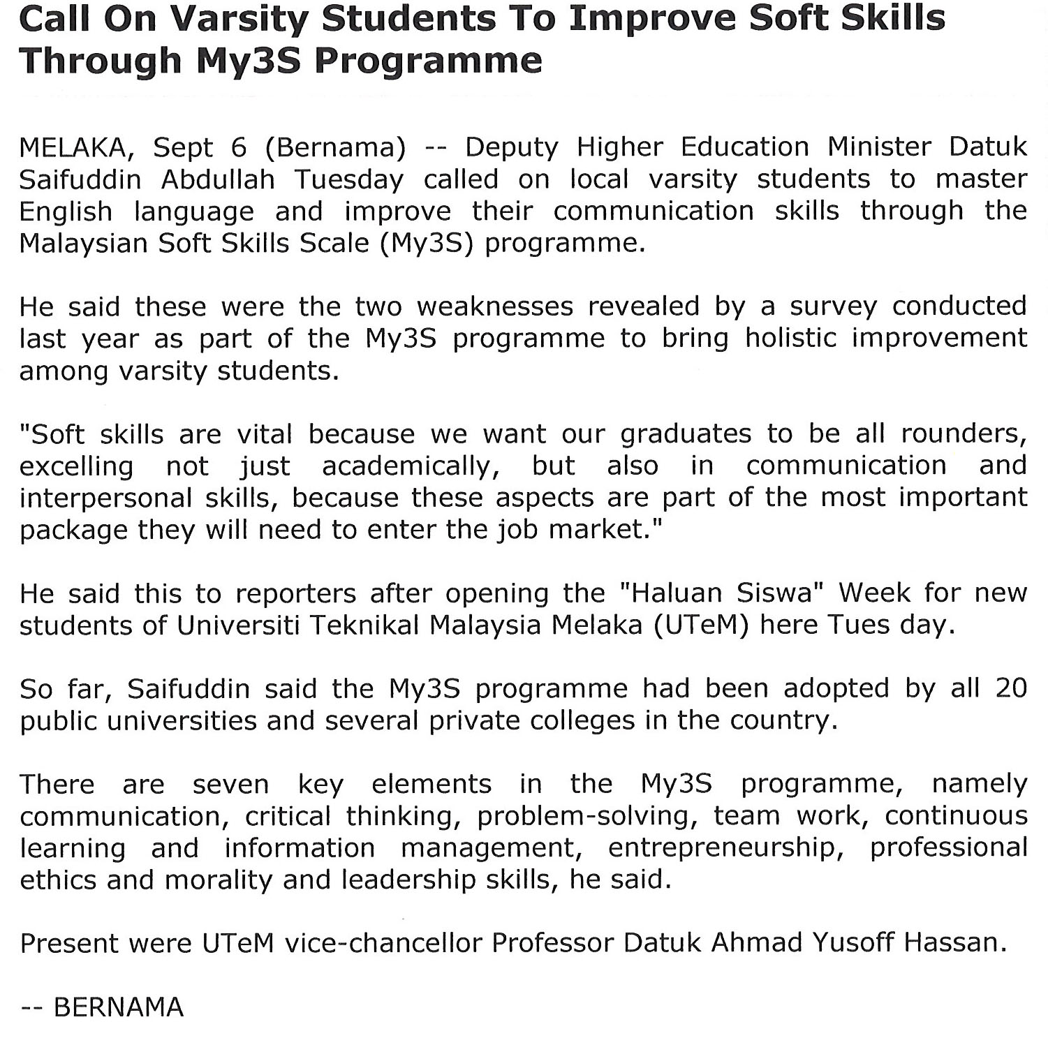 Call On Varsity Students to Improve Soft Skills Through My3S Programme