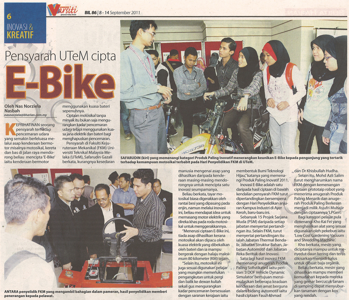 Pensyarah UTeM Cipta E-Bike