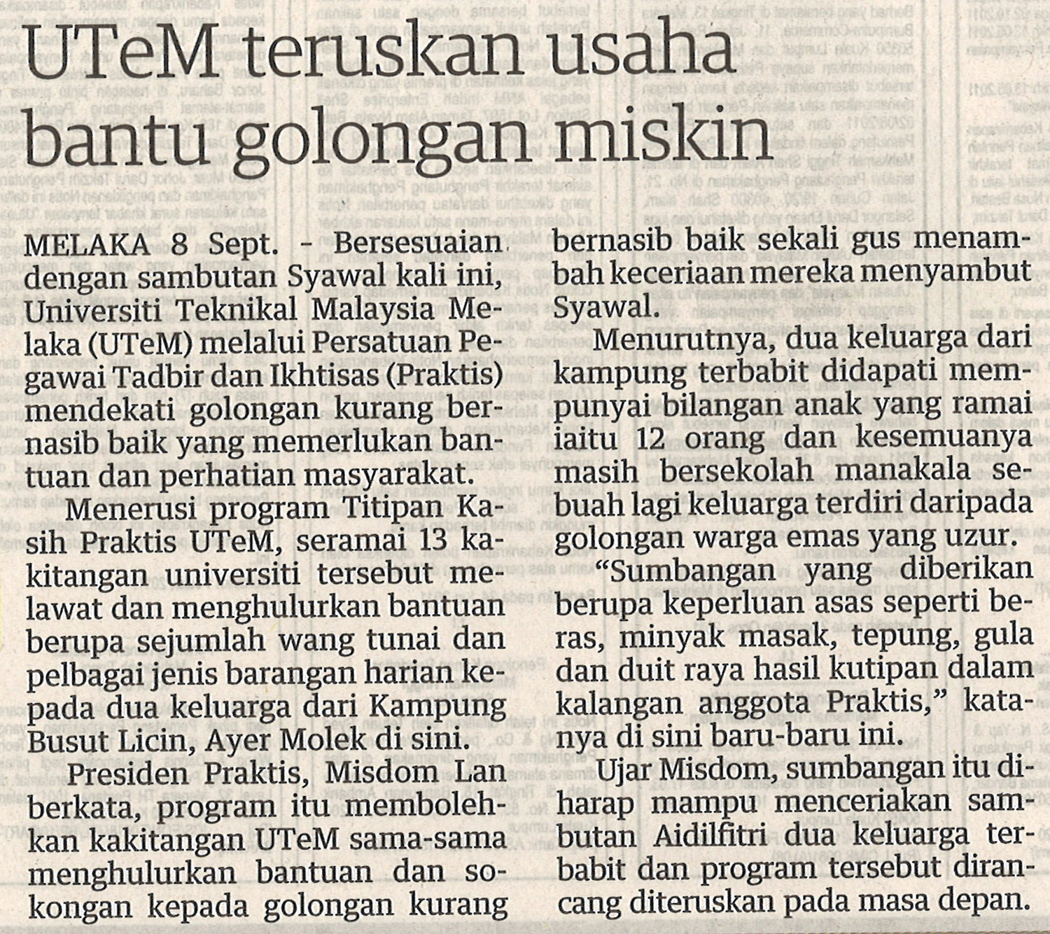 UTeM Teruskan Usaha Bantu Golongan Miskin