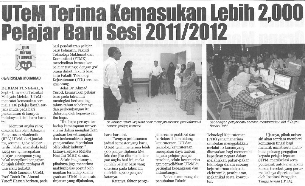 UTeM Terima Kemasukan Lebih 2,000 Pelajar Baru Sesi 2011/2012