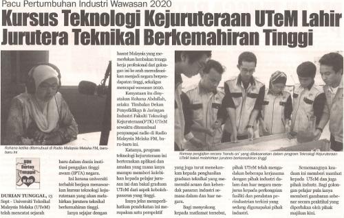 Pacu Pertumbuhan Industri Wawasan 2020 Kursus Teknologi Kejuruteraan UTeM Lahir Jurutera Teknikal Berkemahiran Tinggi