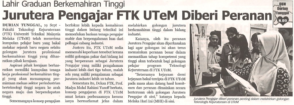 Lahir Graduan Berkemahiran Tinggi Jurutera Pengajar FTK UTeM Diberi Peranan